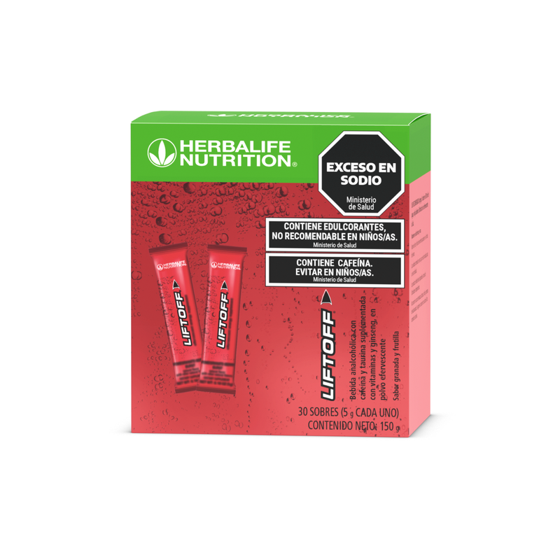 LiftOff es un producto exclusivo de Herbalife formulado a base de guaraná, taurina, cafeína y biotina, fortificado con vitamina C, vitamina B6 y ácido pantoténico. También está suplementado con cuatro vitaminas del complejo B, que contribuyen al bienestar general, incluyendo las vitaminas B1, B2, niacina y B12, que son esenciales para el organismo.